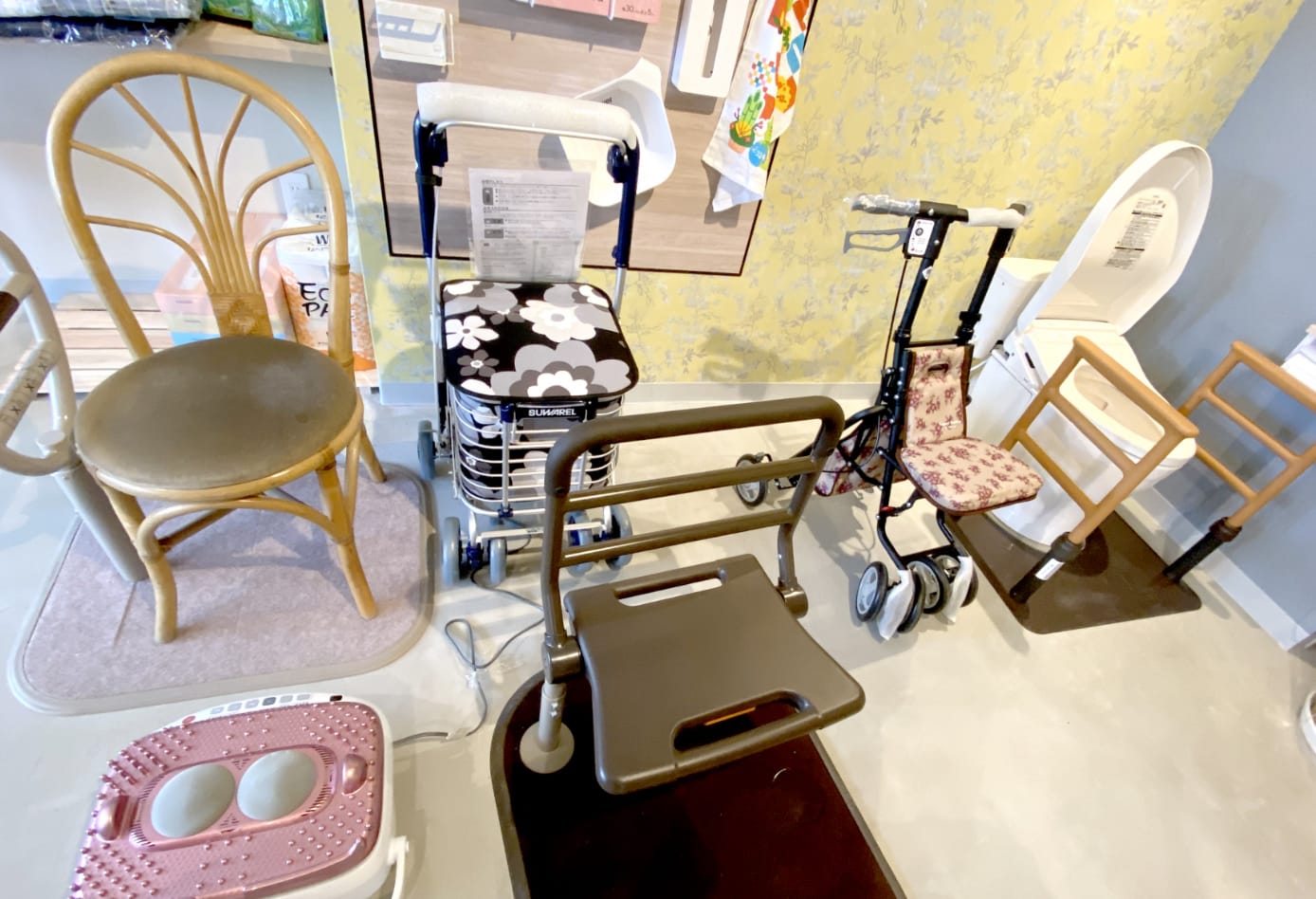 日々必要な日用品から、ベットや車椅子など大きなアイテムまで扱っております。店舗には展示されていない商品も、カタログでの販売を行っておりますので、ぜひお気軽にご相談ください。